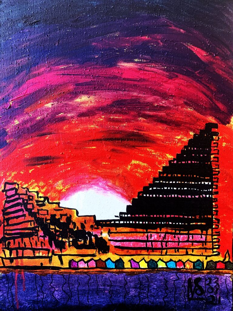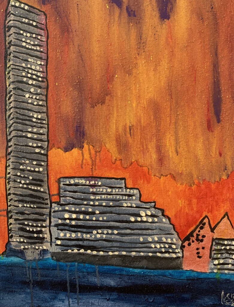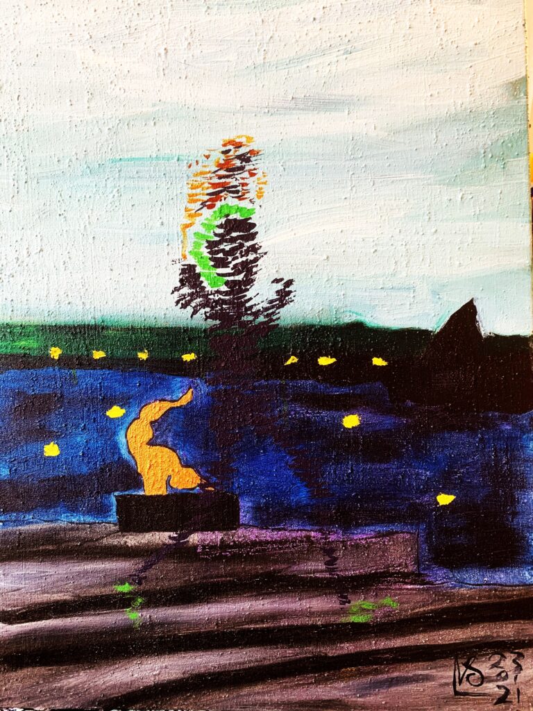 De første syv malerier i serien er fra 2021, malet med akryl på hørlærred, størrelse 50 x 70 cm. De er til salg for 2.000 kr. stykket.